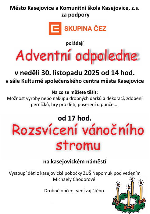 Adventní odpoledne a rozsvícení vánočního stromu v Kasejovicích