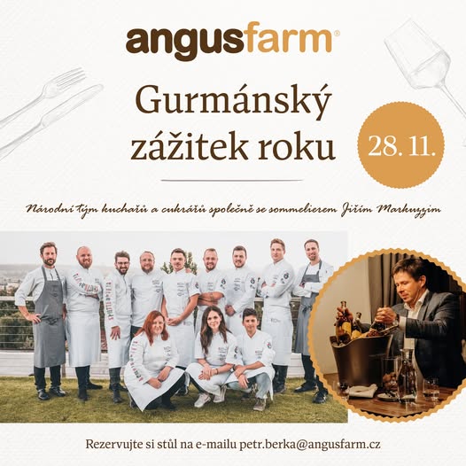 Do Soběsuk zavítá Národní tým kuchařů🥇 – tentokrát se sommelierem Jiřím Markuzzim. Máte příležitost být u toho! Rezervujte si své místo na e-mailu petr.berka@angusfarm.cz a přijďte si užít večer plný špičkové gastronomie, atmosféry a nezapomenutelných zážitků.