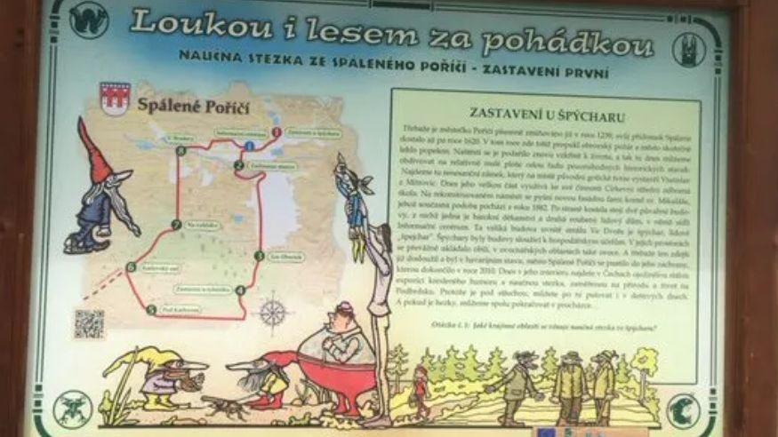 Pohádková naučná stezka je nenáročná, aby ji snadno zvládly jak malé děti, tak rodiče s kočárky. Začíná před areálem špejcharu Ve Dvoře s Nepraktovou galerií kresleného humoru a je značená tabulkami s trpaslíkem.